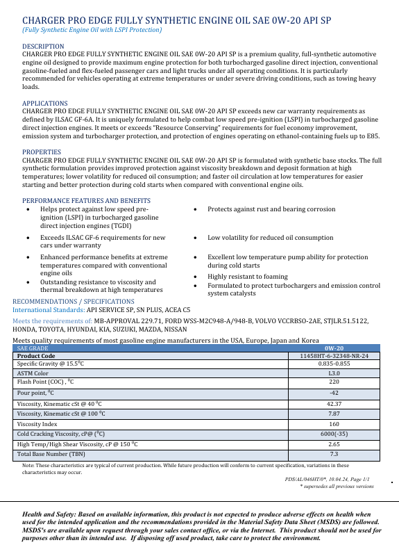 Charger ProEdge, powered by advanced Longlife Technology, delivers exceptional motor oil strength for engines that operate under intense pressure. Designed to support peak performance, it helps your vehicle run stronger and longer.